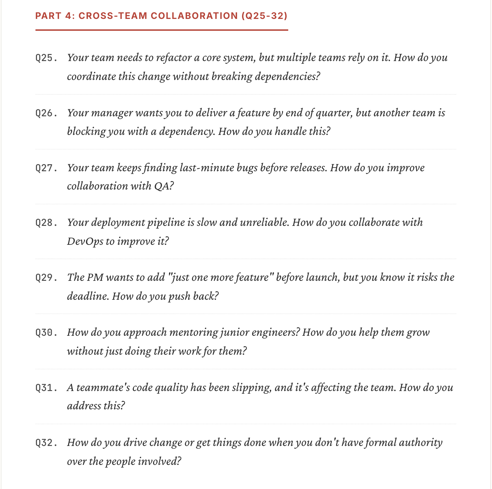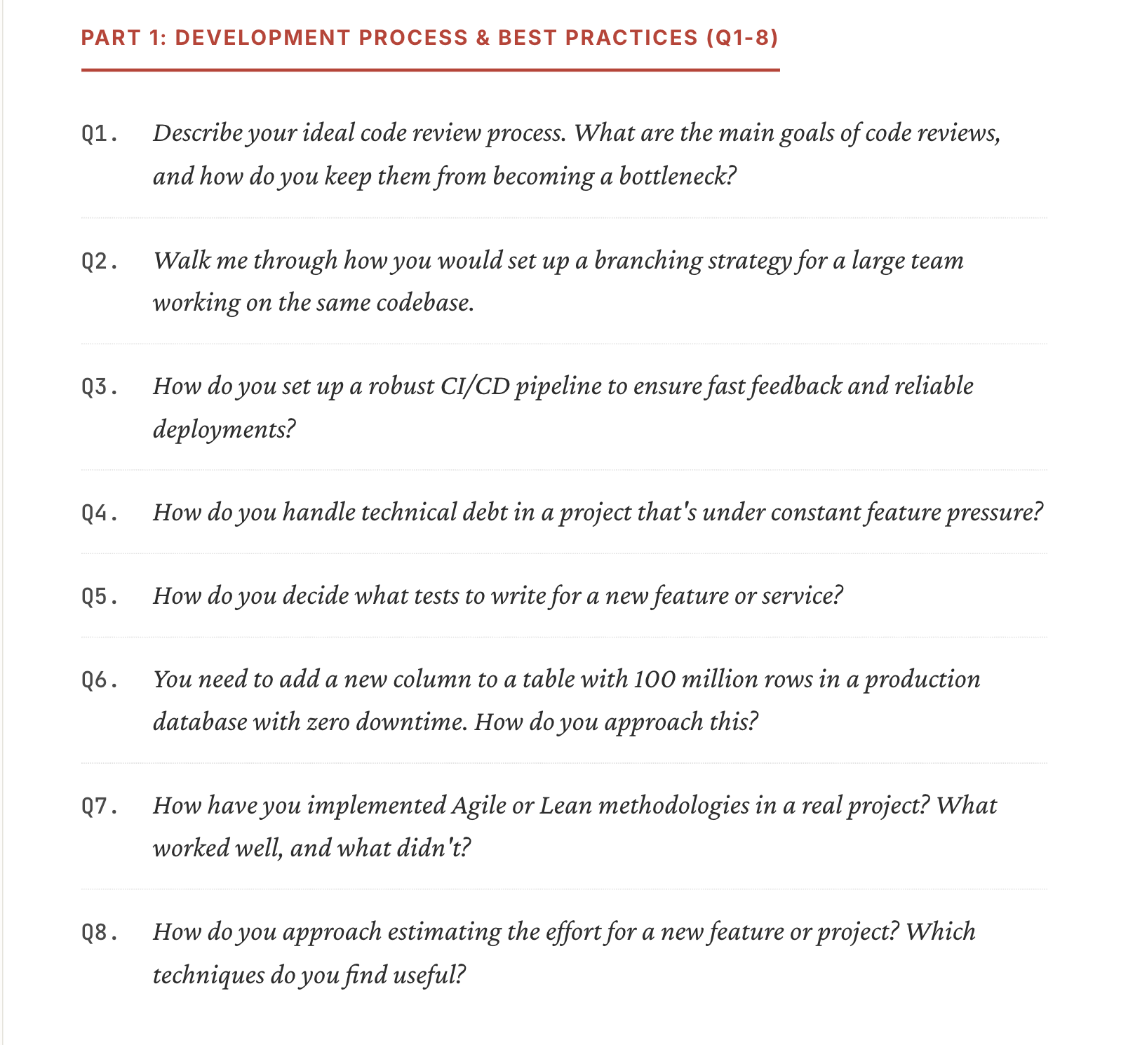 40 practical interview scenarios covering what senior engineers and tech leads are actually tested on.